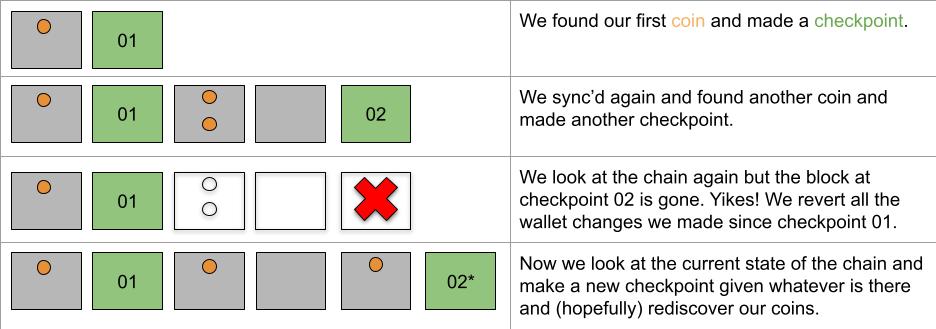 State changes in blockchains are clearly delineated. They all happen in blocks! Every view of the blockchain, whether you're getting it through compact block filters, an electrum server or something wacky like a utreexo bridge will have a concept of blocks and transactions in them. For a wallet we only need a very sparse view of the blockchain that includes at which block a set of transactions existed. That way, if a block disappears we know that all those transactions might disappear too.